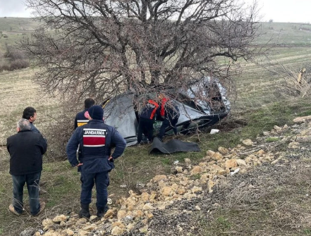 Sivas’ın Gölova ilçesinde meydana gelen trafik kazasında bir otomobil kontrolden çıkarak tarlaya devrildi ve ağaca çarparak durabildi