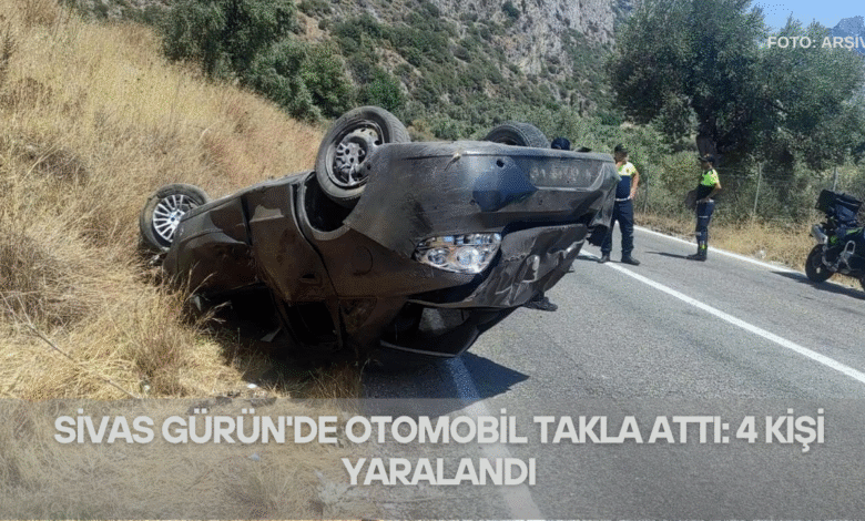 Sivas’ın Gürün ilçesinde meydana gelen trafik kazasında kontrolden çıkan otomobilin takla atması sonucu 4 kişi yaralandı