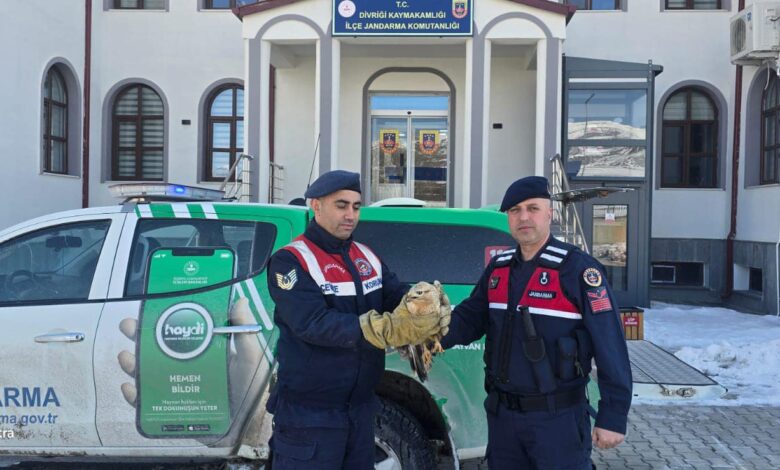 Sivas İl Jandarma Komutanlığı ekipleri, doğada yaralı halde bulunan iki yırtıcı kuşu kurtararak yetkililere teslim etti.