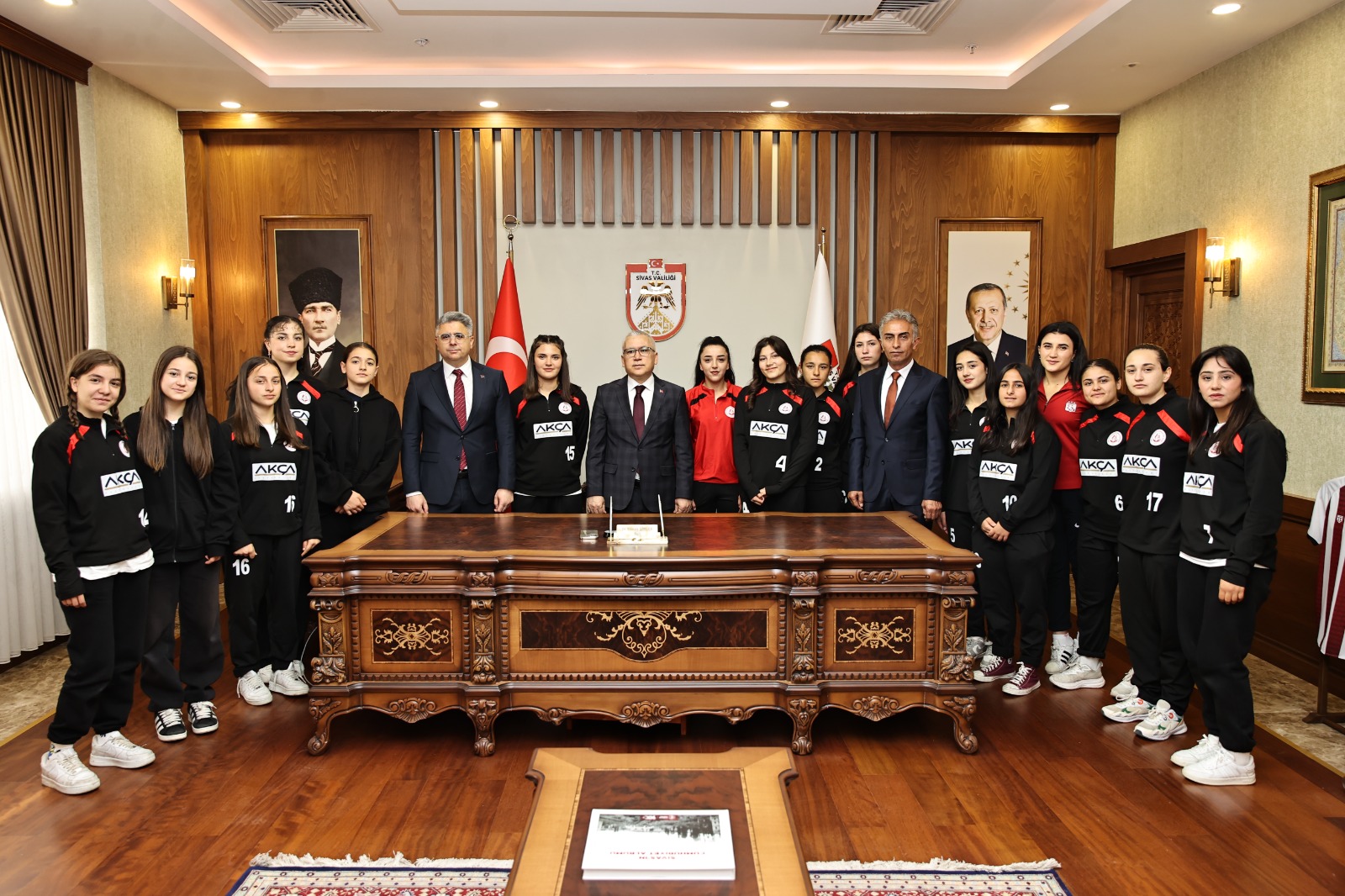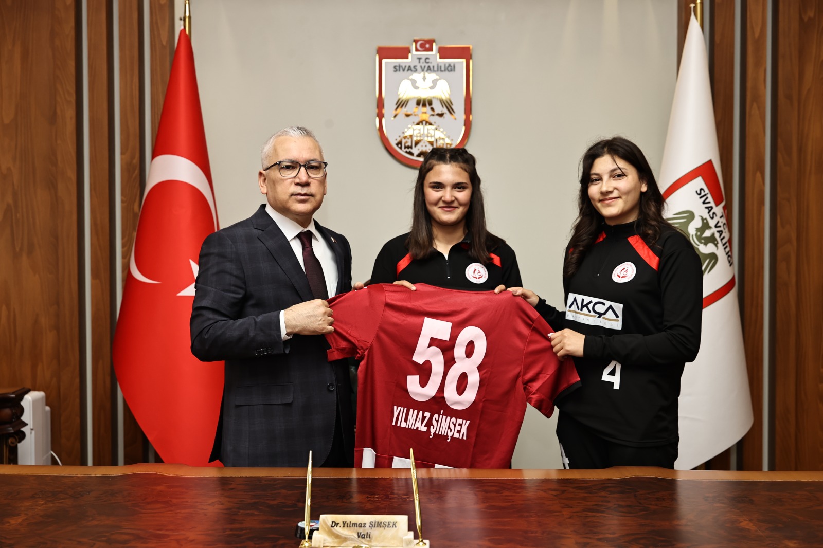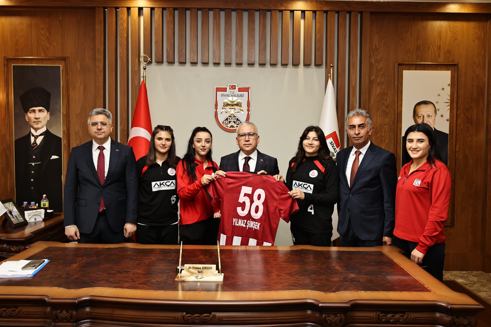 Sivas Valisi Yılmaz Şimşek, Aile ve Sosyal Hizmetler İl Müdürlüğü Kadın Futbol Takımı oyuncuları ve teknik heyetini makamında kabul etti