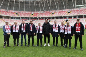 Süper Lig’in 25’inci haftasında sahasında Konyaspor ile karşılaşacak olan Sivasspor karşılaşmanın hazırlıklarını sürdürdü. 4 Eylül Stadyumu’nda gerçekleştirilen antrenman öncesi Sivas Valisi Yılmaz Şimşek ile Belediye Başkanı Adem Uzun takımı ziyaret ederek maçta başarılar diledi. Kulüp Başkanı Bahattin Eken tarafından karşılanan Vali Şimşek ve Başkan Uzun futbolculara tatlı ikram etti.