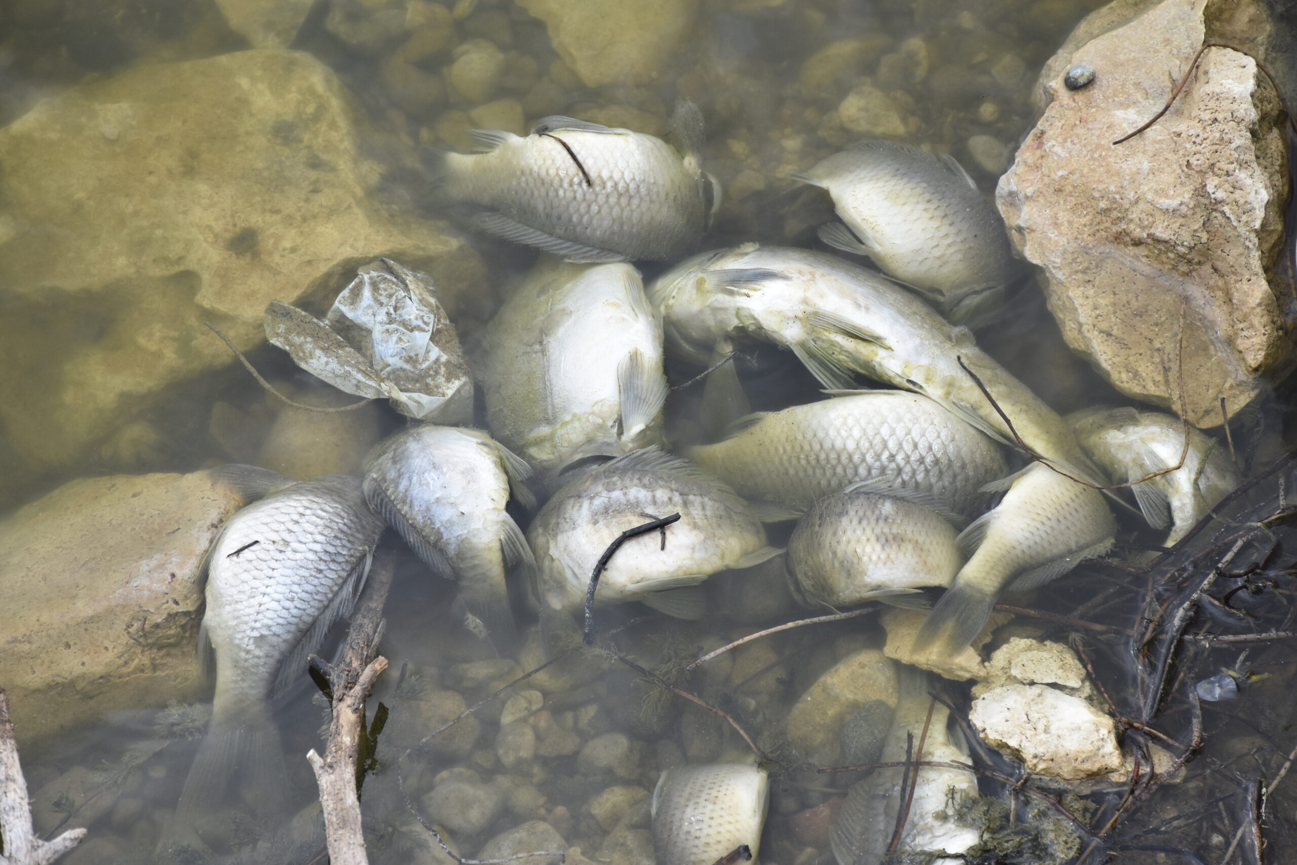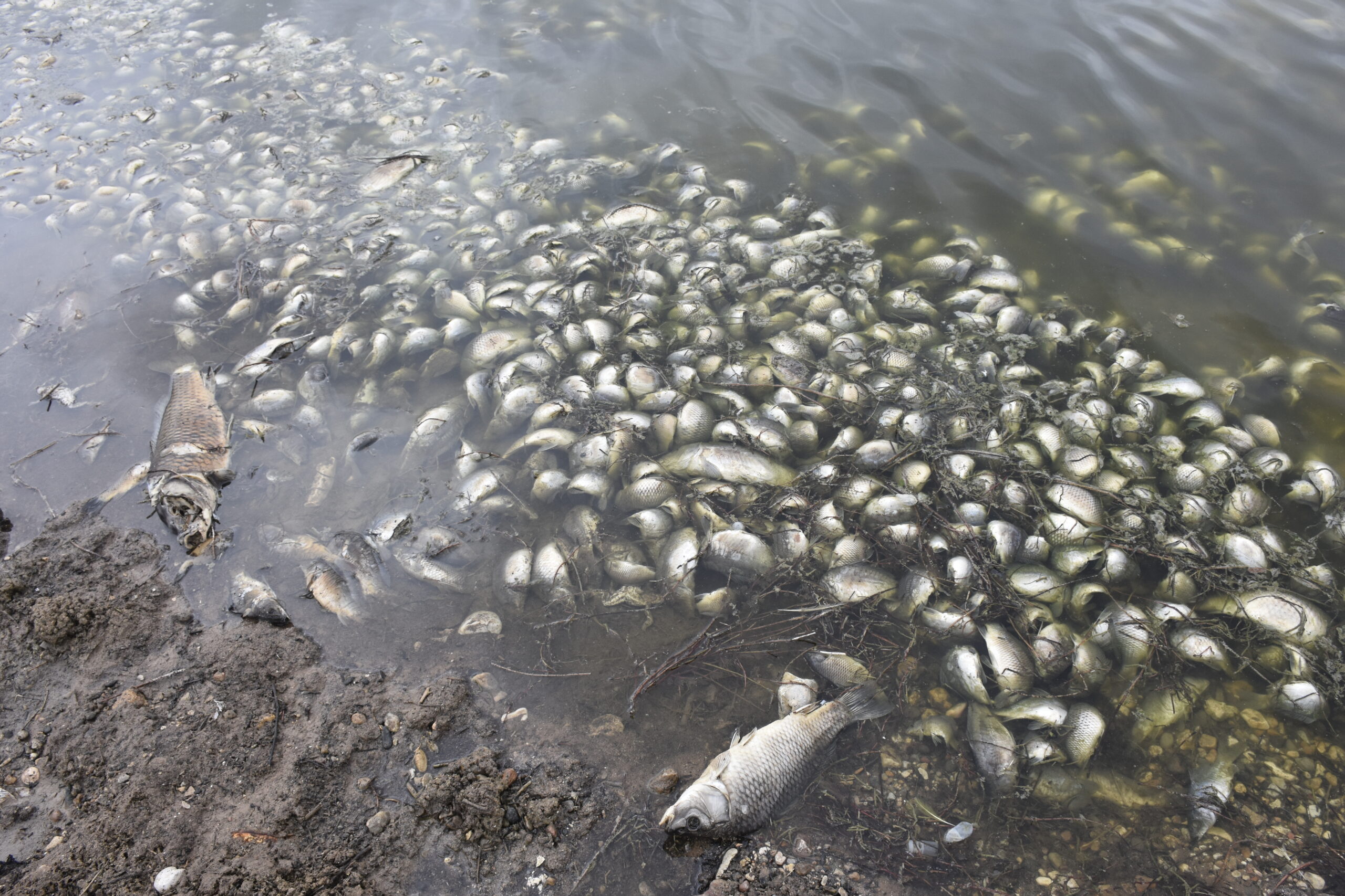 Sivas’ın Kangal ilçesine bağlı Deligazili köyü yakınlarındaki Deligazili Baraj Göleti’nde toplu balık ölümleri meydana geldi. Gölette su seviyesinin düşmesi ve oksijen yetersizliği nedeniyle binlerce balık öldü.