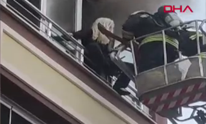 SİVAS’ta apartmanın 3’üncü katındaki yangında, pencereye çıkıp yardım isteyen Hüseyin Zeki, itfaiye ekipleri tarafından yangın merdiveniyle kurtarıldı.